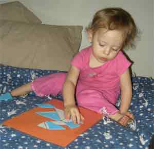 I am amazed at how versatile tangram activities are. Some of the puzzles have challenged me, and yet my daughter who is not yet two has been able to do outlined puzzles.
