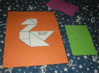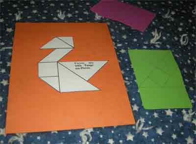 There are a lot of creative ways that I have seen tangrams used, such as for breakfast, on felt, or in a homemade book format (scroll down to see this one). Have fun!