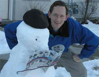 We were recently inspired by a local creative snowmen artist to get out there and make a snowman after our recent blizzard. Although we are not as creative as the man in the article, it was fun to come up with something for our snowman to do- read the newspaper. Here’s the challenge: No more bored snowmen! Make them earn their keep. :o)