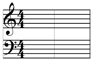 It is simply two large measures for piano with no music written inside. I printed this out on cardstock and then laminated it, which essentially turned the card into a white board. I was able to let my students write on it with crayon (washable crayon also works), and then wipe it off with a piece of scrap cloth I made from an old T-shirt. You can also use pennies or glass pebbles from the dollar store to mark the notes, as rhythm is not part of this exercise.