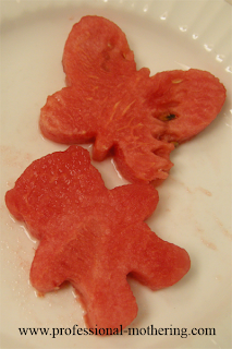 I’m not very good at making sugar cookies, in fact I have done it only once with my children. But I love our cookie cutters and wanted to put them to good use, so we used them on our watermelon yesterday. The kids loved it! The only bad thing about it was that my 3-year-old didn’t want to eat the watermelon that surrounded his new creation. Oh well, more for me.